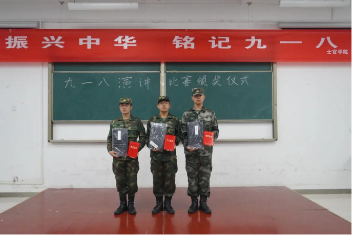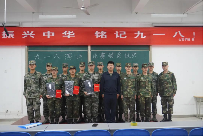 9月18日下午在士官公司军政教官芦智钢的带领下如期进行了纪念918演讲比赛颁奖仪式,士官公司骨干为获奖同学颁发了荣誉证书,激励着士官生不忘国耻,刻苦训练、努力学习,提高自身素质,为中华民族伟大复兴做出贡献。
