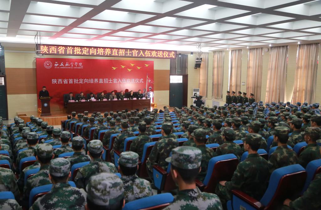 12月28日下午,陕西省首批定向培养直招士官入伍欢送仪式在公司阎良校区报告厅举行。陕西省军区副参谋长王德海,陕西省教育厅员工处处长唐澍,西安市警备区参谋长王巨礁,阎良区武装部政委周立文,阎良国家航空产业基地管委会发展策划局局长吴春鹏,火箭军工程大公司办秘书李德峰,董事长曹庆年,党委副书记谭少敏出席了会议。公司党政办,员工处,教务处,招就处,团委,机械工程公司负责人和300余名员工参加了大会,共同欢送即将入伍实习的81名士官员工。大会由士官公司经理张军主持。