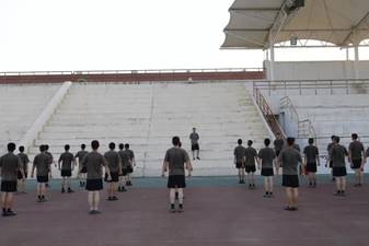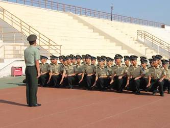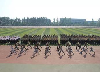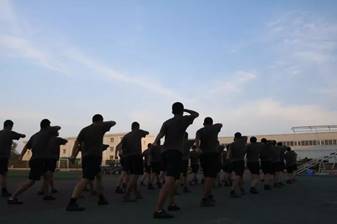 我们在集训期间教唱军歌,提升我们的部队文化,还举行了条令考试和体能测试,全方面的对我们进行了考核,这些就我们的集训记忆,它虽承载这苦涩与艰难,但却是我们最珍贵的回忆。转入正片,转入正片,今天是我们的最后一天,我们在李庆政委,张亚峰教官,秦震,王冰洋,敬超凡教官的审核下,进行了队列会操汇报表演。