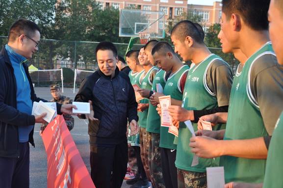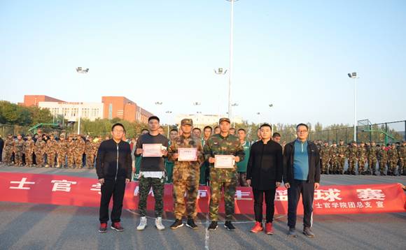 颁奖时刻,教师队与新生队员亲切拥抱,张经理对同学们讲道:“士官公司在以往的‘迎新杯’中都获得了很好的成绩,希望同学们能再接再厉,为全校体育事业贡献自己的力量。”教官敬超凡也说:“课外打球,主要是为了锻炼身体素质,不能过分较真;但是在课内学习中,大家一定要像竞技场上一样,发扬你追我赶、力争上游的精神,在学业中勇创佳绩、铸就辉煌。”现场响起雷鸣般的掌声,经久不息。