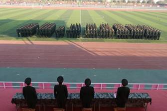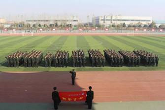 穿上军装的那一刻,注定此生与军旅结缘;摸爬滚打的三个月,只为今朝最好的展现。沙场秋点兵。士官公司为检验2018级新生整体训练效果,强化从军荣誉感和队列素养,于2018年11月23日下午,在操场举行“士官公司举办2018级新生队列会操暨配饰发放仪式”,模拟团李庆政委、张亚峰参谋长、秦震营长出席,团总支书记赵炫儒主持活动。
