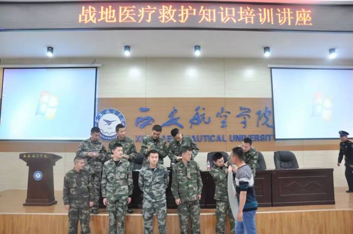 且多次邀请与会同学上台实际操作,收到同学们的热烈欢迎,在曾班长耐心的讲解,同学们的积极参与下,同学们对战地救护知识有了更加深刻的了解,对战地救护有了明晰的认识。下午四时许,讲座圆满结束。