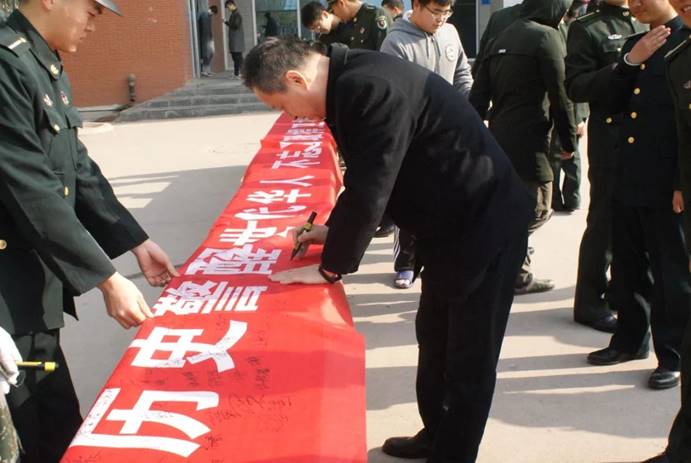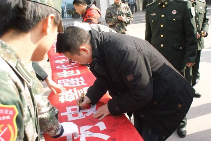 中午11时30分,士官公司联合朝阳国旗护卫队在第一餐厅门口举行“勿忘国耻,吾辈自“为主题的国家公祭日签名活动,活动现场刚刚布置完毕,便有师生走过来主动的拿起笔郑重的签上了自己的名字,士官公司和朝阳国旗护卫队的工作人员也积极的向路过的师生邀请他们加入这个签名活动中来,有很多同学在准备的白鹤写下“勿忘国耻、吾辈自强、振兴中国”等等纪念国家公祭日的话语。“忘了历史等于背叛过去”一位老教授郑重的对同学们讲到。