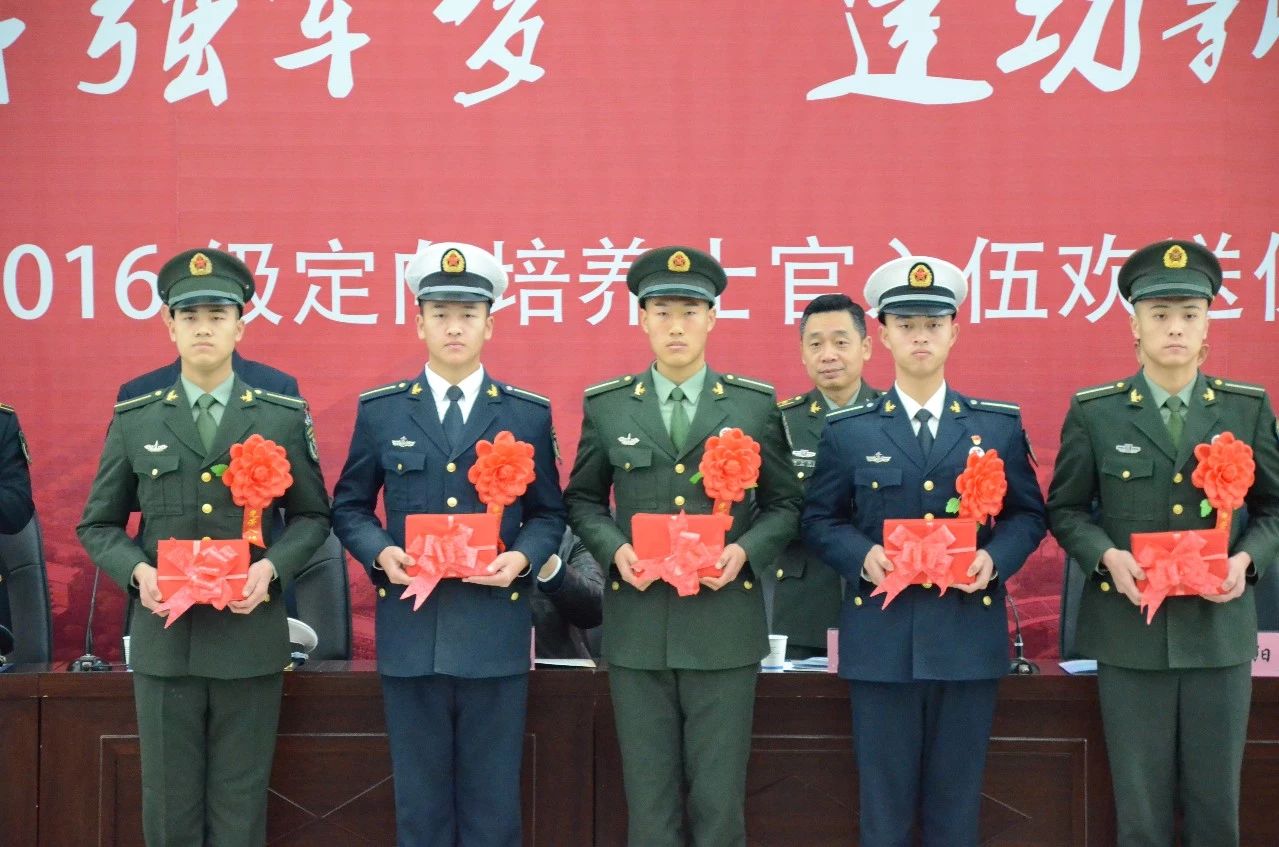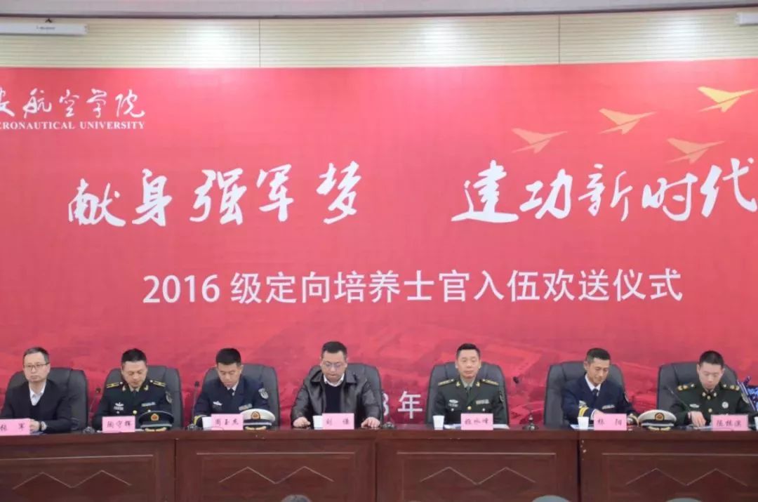 12月27日上午,公司2016级定向培养士官入伍欢送仪式在阎良校区报告厅举行,阎良区人民武装部部长姬水峰、海军航空大学青岛校区中校周玉杰、海军航空大学流亭训练基地中校杨阳、火箭军士官公司少校陶守辉、战略支援部队二十六基地少校杨军,公司党委副书记刘谦出席仪式。党政办、教务处、员工处、校团委、人才招聘处、保卫处,电子工程公司、机械工程公司、飞行器公司、士官公司负责人及相关人员,全体大三士官生,部分员工家长参加仪式。仪式由士官公司党总支副书记李庆主持。