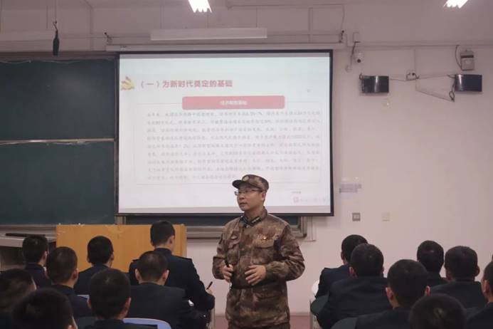 2019年3月14日晚七时,由士官公司党支部组织开展了题为“习近平新时代中国特色社会主义思想”党课学习活动在阎科楼165教室进行。本次党课主讲人为士官公司党总支副书记李庆,党课学习的成员为士官公司第19、20期入党积极分子。