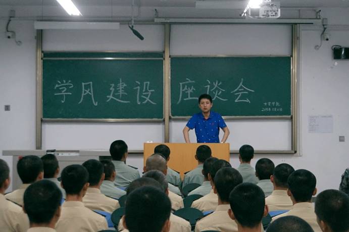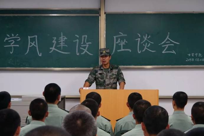 在座谈会上,大一士官生代表对于近期的学风问题,发表了自己的看法和建议,主要针对就寝睡觉、体能训练、学习效率、课堂纪律、图书借阅、晚自习出勤、手机使用等问题进行分析。部分士官生对请假和逃避训练等问题发表了自己的看法,并提出了自己的建议。大二士官生进行员工问题总结,由于大二普遍课程繁多,所提问题主要是针对学习风气为主,如:“如何才能最大化的使学习和训练成绩同时提高”。最后,付超科长进行总结,他讲到,作为员工,当务之急是狠抓学习,要把学习作为第一要务,但是,也要同步提高军事训练成绩,总之,要统筹发展,不可“偏科”,最后,他鼓励各位士官生要好好学习,坚持训练,为以后的军营生活打下坚实基础。