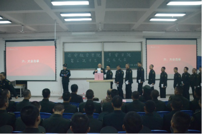 12月9日,士官公司第三次员工代表大会在第二阶梯教室召开,士官公司党总支副书记李庆、校团委副书记米嘉琪、团总支书记赵欣、员工代表95人参加了大会。会议由士官公司员工分会主席团成员裴威主持。