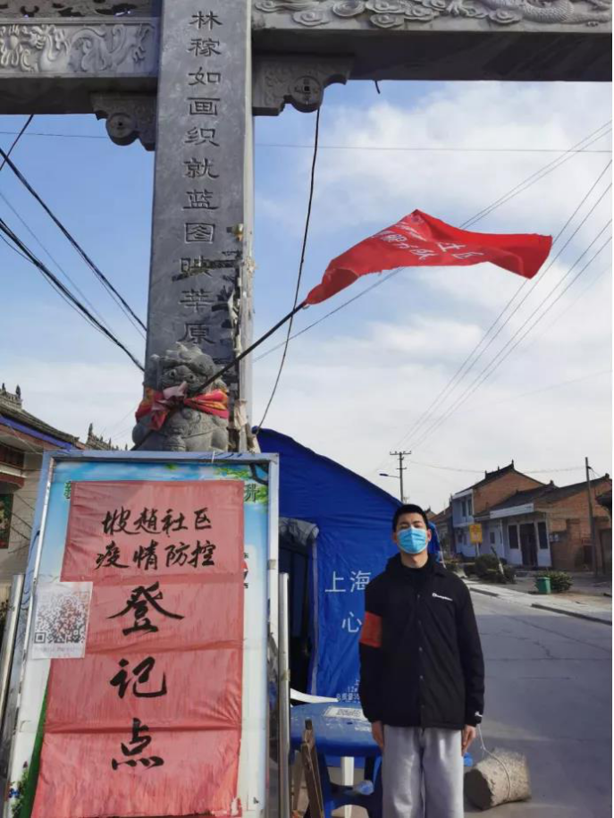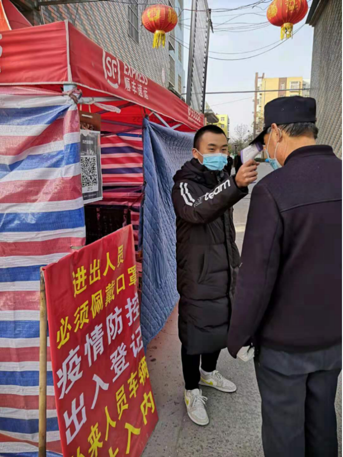 电气192D班雷博杰,在陕西省渭南市合阳县新池镇坡赵村当疫情志愿者,他负责在村庄路口值守,为进出人员测量体温,平均每日接待50余人,共计志愿服务23天,为当地防疫工作奉献自己的力量。
