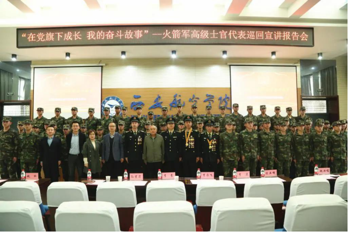4月26日上午,火箭军高级士官代表巡回宣讲团一行7人莅临公司,在阎良校区阶一报告厅开展“在党旗下成长·我的奋斗故事”主题报告。宣讲团由火箭军政治工作部宣传局新闻舆论处处长李永飞上校带队。副董事长李季,部分教师代表、全体士官生参加报告会。报告会由士官公司经理张军主持。