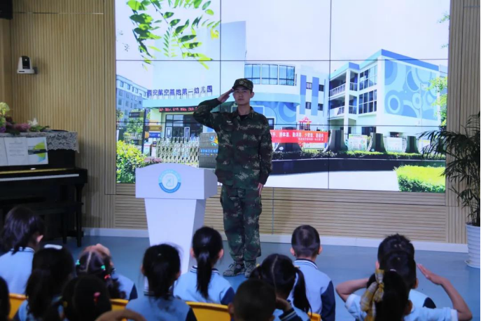 5月17日上午,士官公司宣讲团、国旗护卫队,社会实践部等27名同学前往航空基地第一幼儿园参加“童心筑梦携梦飞翔”科技节启动仪式暨爱国主义教育活动。