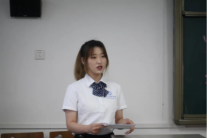 材料工程公司赵思雯宣讲的主题为《坚定信念忠于党,矢志强军敢担当》,通过举例介绍时代楷模强调“少年强则国强,少年独立则国独立”并引用习近平总书记的:“要实现中华民族的伟大复兴,必定要有一支听党指挥,能打胜仗作风优良的人民军队作为坚强后盾。”指出强军目标的重要性。