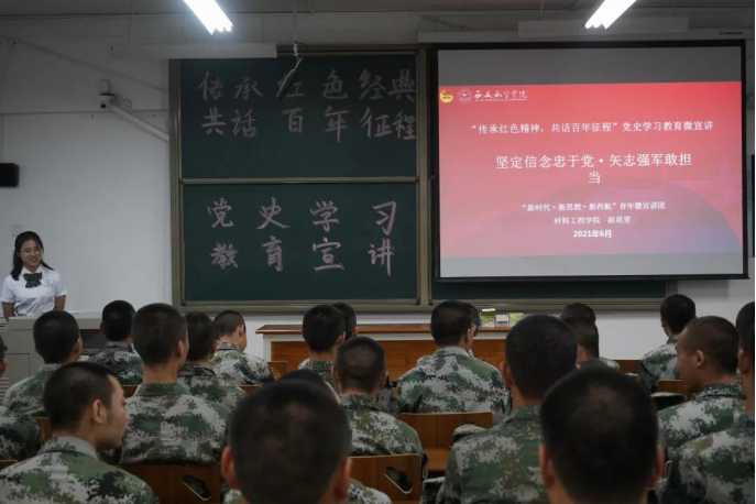 新时代新思想新西航青年微宣讲团于6月16日在公司开展“传承红色精神,共话百年征程”员工党史学习教育宣讲活动。活动围绕“学史明理、学史增信、学史崇德、学史力行”的中心,向士官生宣讲百年党史精神。
