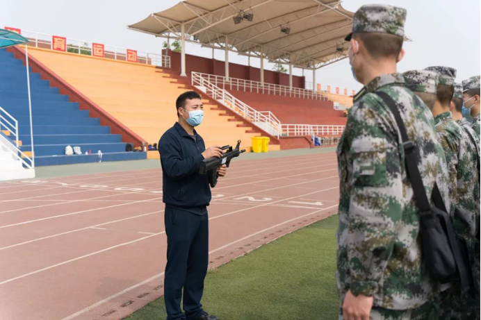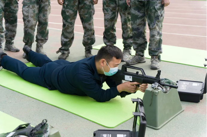 敬超凡教官使用激光模拟装置为士官生们讲解演示了射击要领和验枪方法,着重从射击心态、据枪、瞄准、击发等射击中的各个动作要领对大家进行了示范教学。