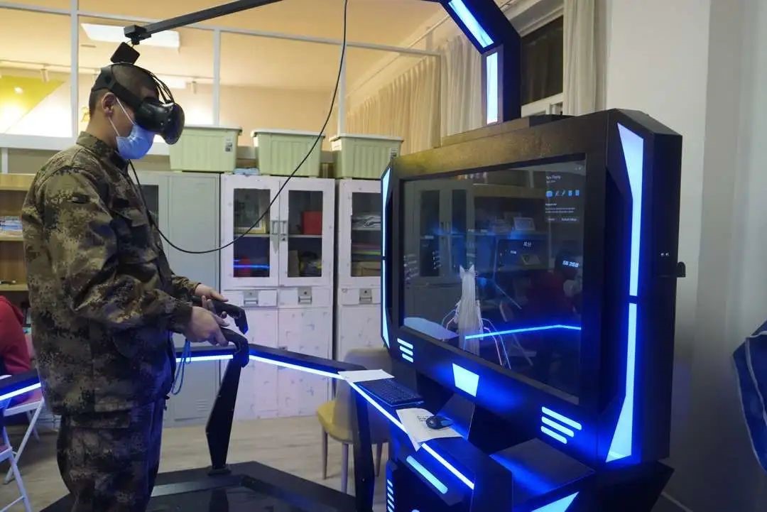 陈文博老师向大家详细讲述心理咨询中心的主要职责与功能。讲解中,心理护航员有序体验了四个区室的设施,分别是沙盘游戏、按摩椅、运动发泄、VR项目体验。随后,学员们通过相关设备的体验,来缓解近期训练带来的疲劳,并得到心理压力的释放。