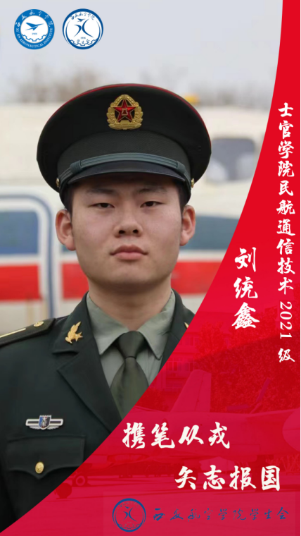 刘统鑫,男,汉族,共青团员,航信212D班,现任士官公司资助部负责人。在校期间,该同学作为入党积极分子,积极参加各种社会活动和社会实践,有良好的道德修养和坚定的政治方向。担任部门负责人期间,工作认真负责,能吃苦耐劳,勇于创新,不断进取,能够出色的完成公司分配的任务,荣获“军训优秀学员”,“国家励志奖学金”。