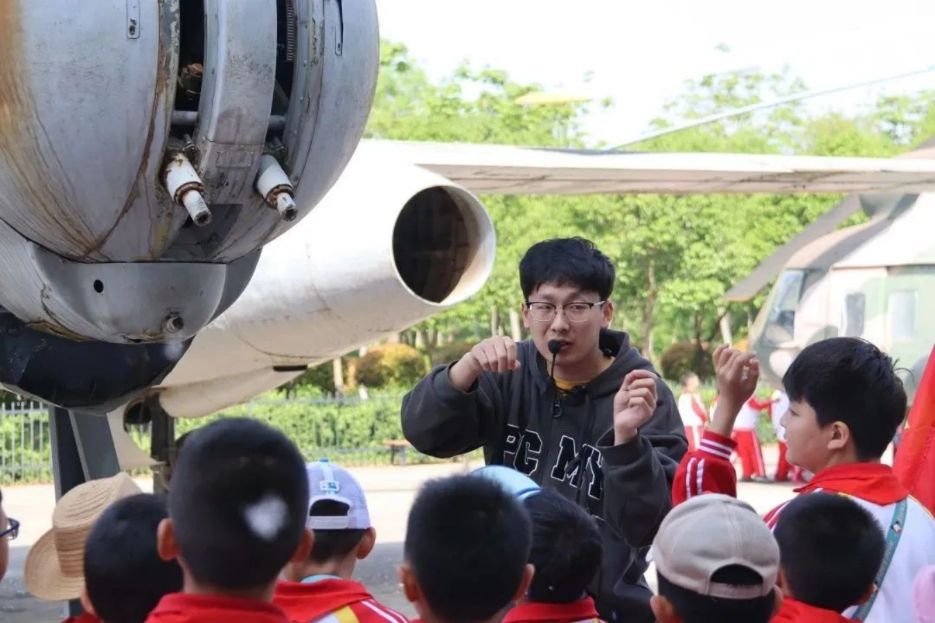 紧接着,孩子们在讲解员的带领下到公司停机坪及航空实训基地参观学习,讲解员为孩子们讲解公司停机坪飞机的历史信息及用途,并通过现场讲解,使孩子们对航空航天知识有更深入的理解。