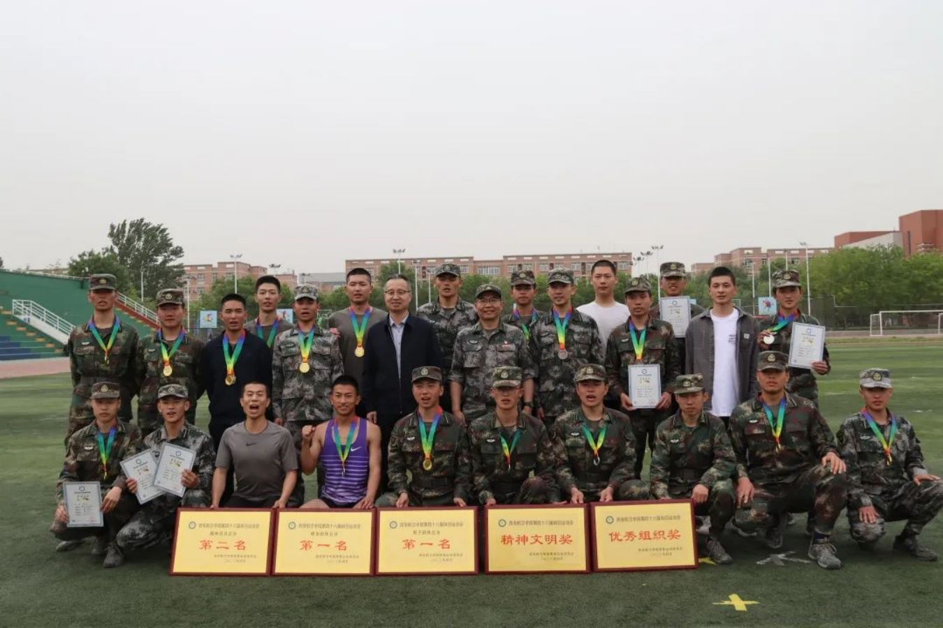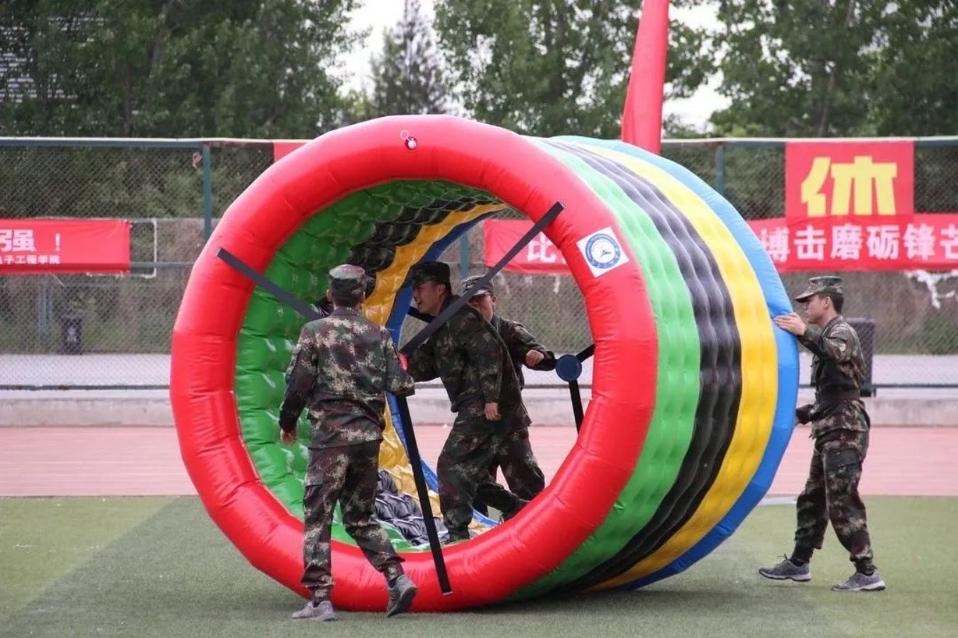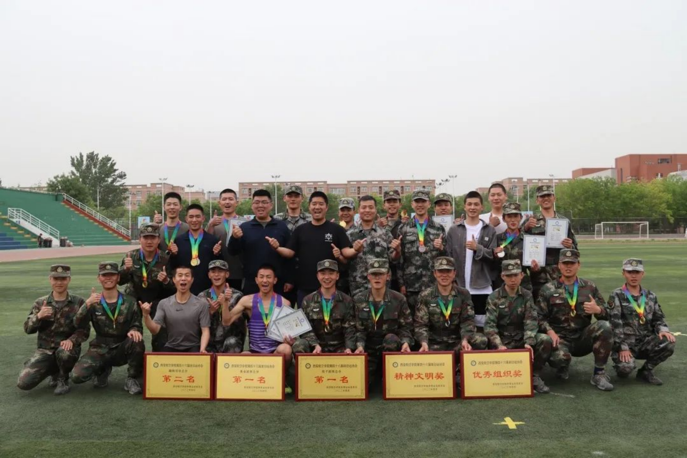 运动场上取得的成绩,是对我们平时刻苦训练成果的检验,今天的挥洒汗水苦练,是为了将来在真正的军营一飞冲天。军士学员的信条:有第一必争,有荣誉必夺,有困难必克。祖国需要——我在!祖国强大——有我!