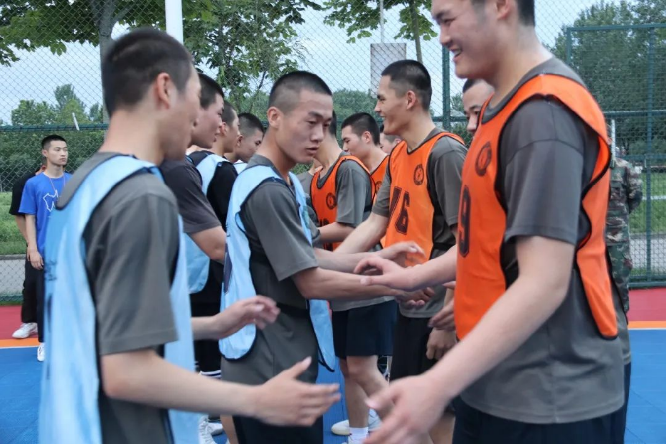 背后运球、转身过人、急停跳投、盖帽断球、贴身防守、突破分球,赢得场边观众的阵阵欢呼声。学员们在激烈的比赛中,以球会友,增进彼此友谊。
