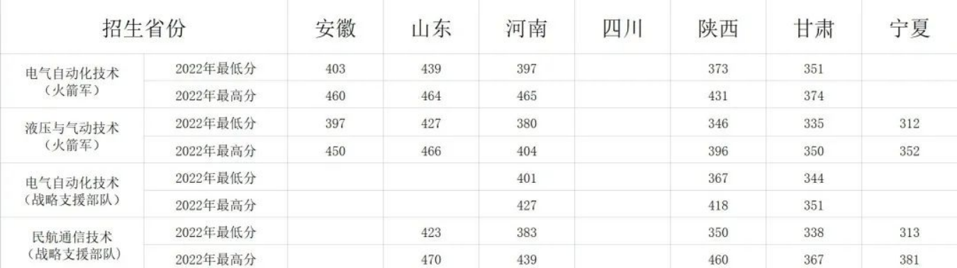 高职(专科)计划:290名。其中火箭军200名,战略支援部队90名。