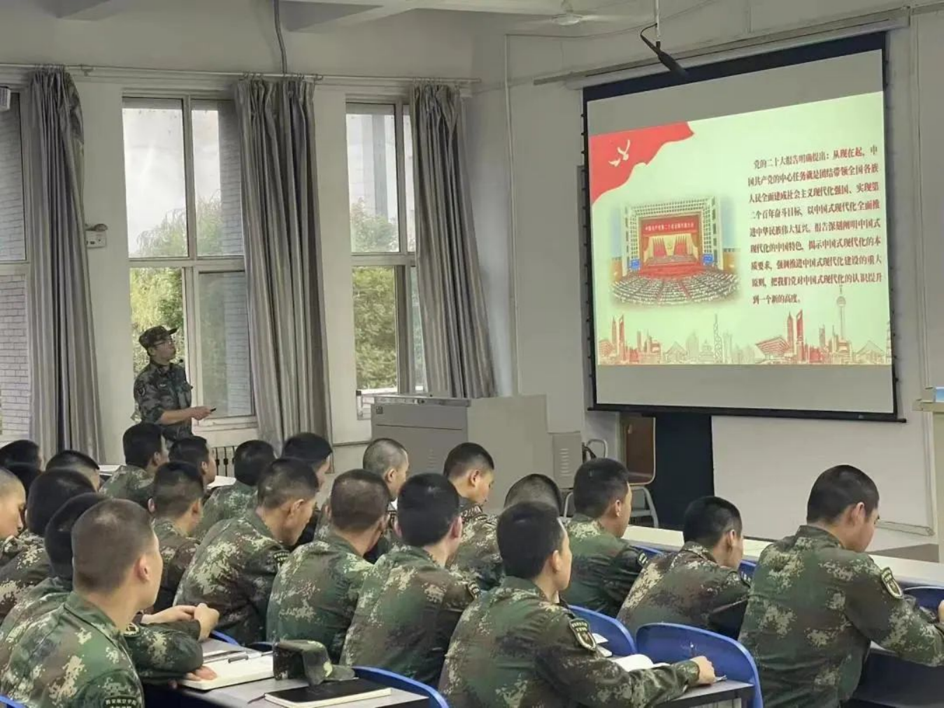 为培养士官公司学员继续贯彻党的二十大精神,持续深化对党的二十大精神的认识和理解,6月6日晚,士官公司在阶级教室五开展“中国式现代化推进中华民族伟大复兴”主题演讲,由士官公司党总支副书记李庆组织开展,十三期发展对象和二十八、二十九期积极分子积极参与。