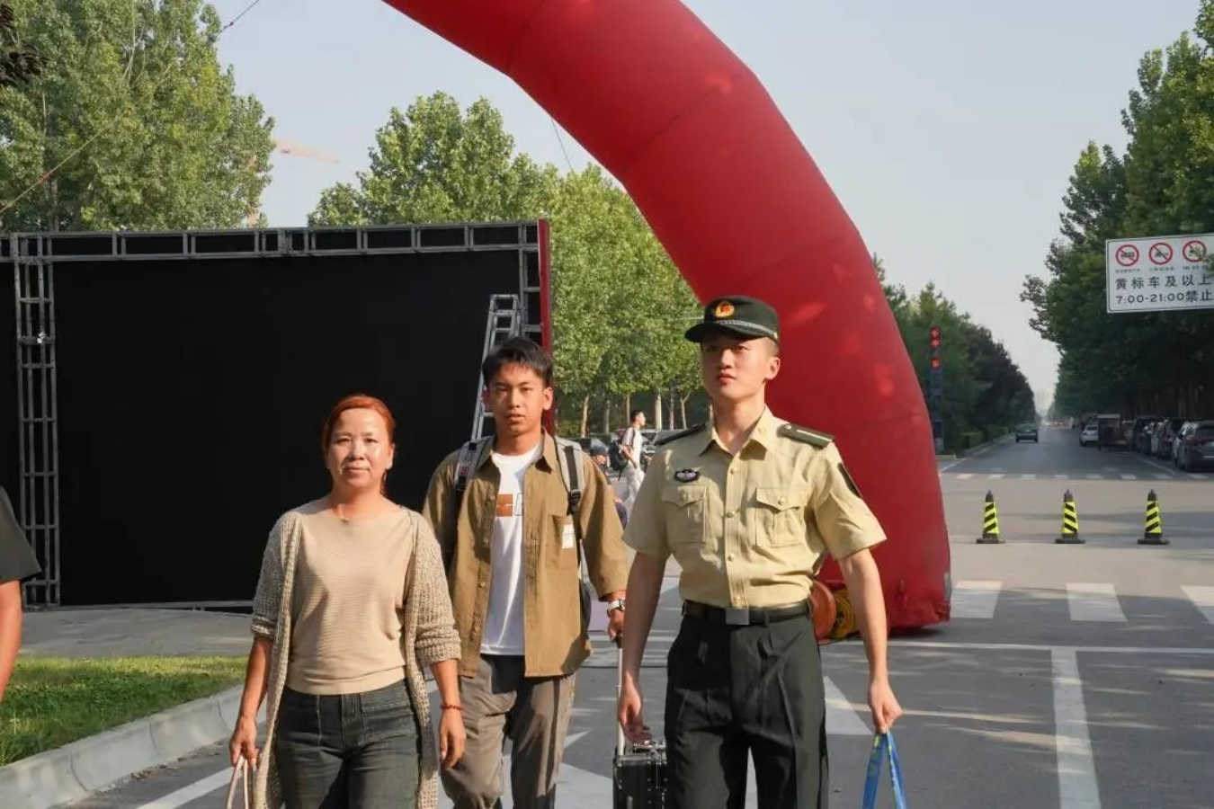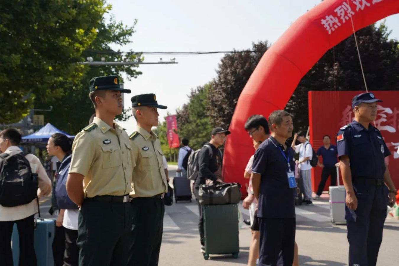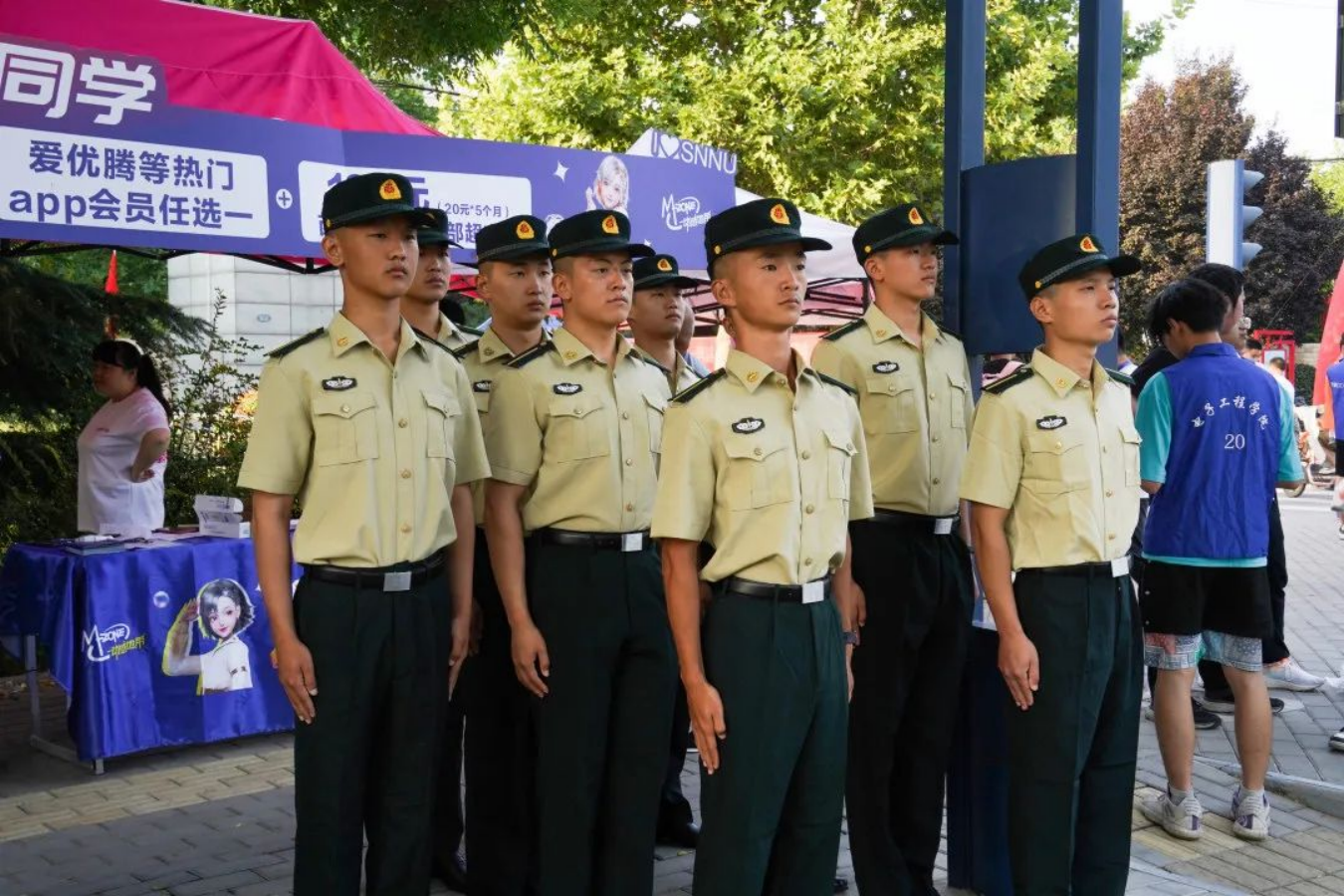 9月4日,负责迎接的学员志愿者们步伐铿锵,军姿挺拔,等待着新学员的到来。