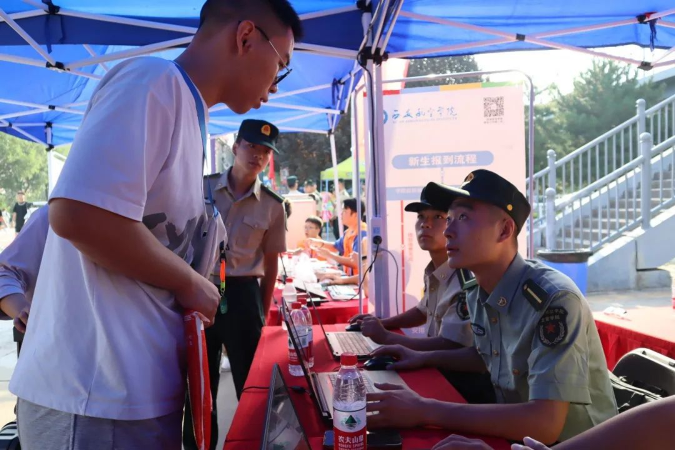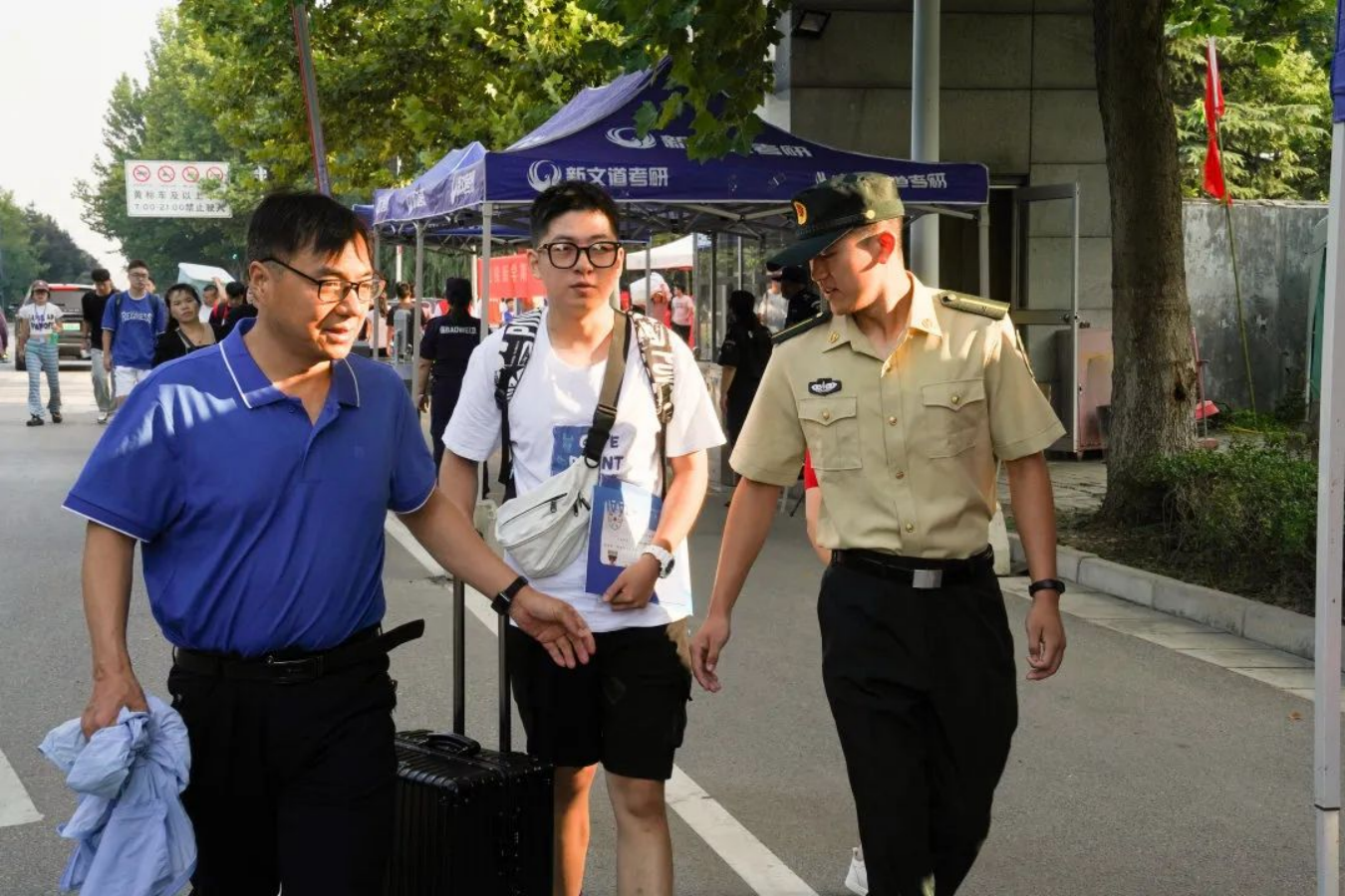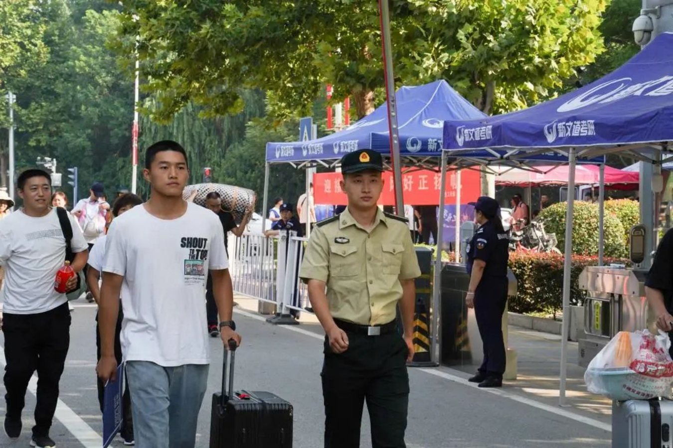 9月4日,负责迎接的学员志愿者们步伐铿锵,军姿挺拔,等待着新学员的到来。