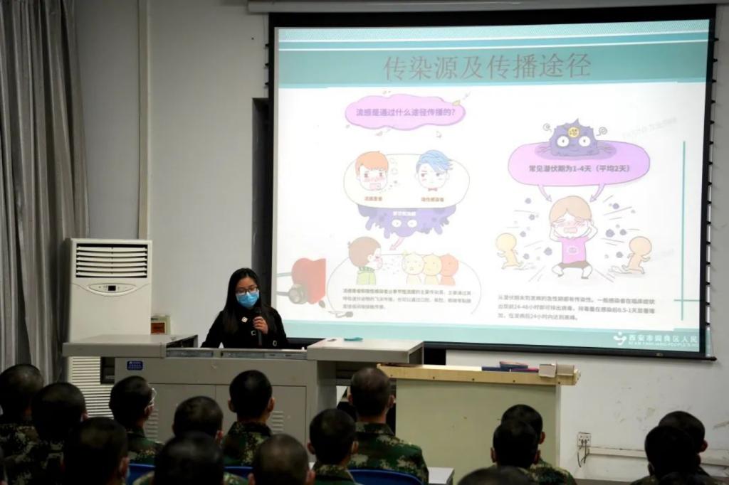 为切实做好学员秋季传染病防控工作,防止集体性疫情发生。10月18日,best365中国官方网站在阎良校区第三阶梯教室组织开展秋冬季传染病防治知识讲座,本次讲座由校医院举办,邀请了西安市阎良区人民医院感染科副主任彭苗医生作主讲。军士公司党总支书记李庆参与主持,全体大一学员积极参加。