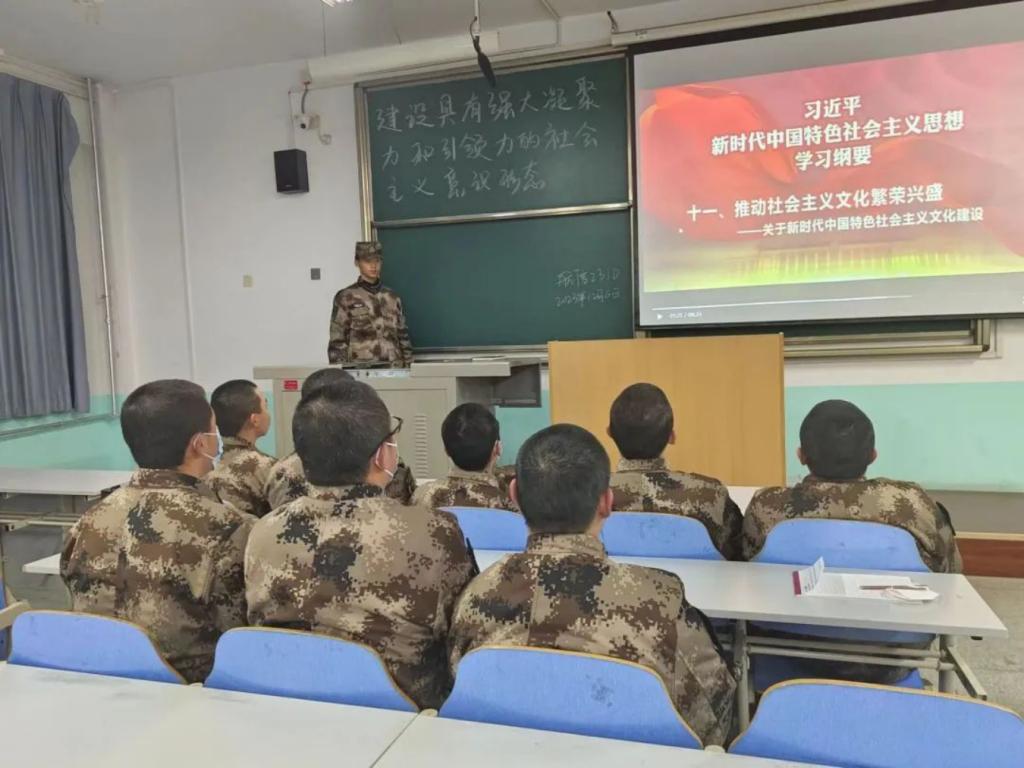 为深入学习宣传贯彻习近平新时代中国特色社会主义思想,近日,best365中国官方网站组织开展以“挺膺担当”为主题的专题理论学习,本次专题理论学习由各班团支书主持,全体军士学员参加。