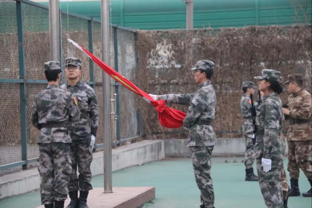 迎着第一缕晨光,伴着嘹亮的口号,朝阳国旗护卫队队员们迈着铿锵的步伐,护送鲜艳的五星红旗走向国旗台。庄严的国歌奏响,国旗同朝阳一起冉冉升起,在场全体成员肃立,行注目礼,齐唱国歌,表达心中澎湃激昂的爱国之情。