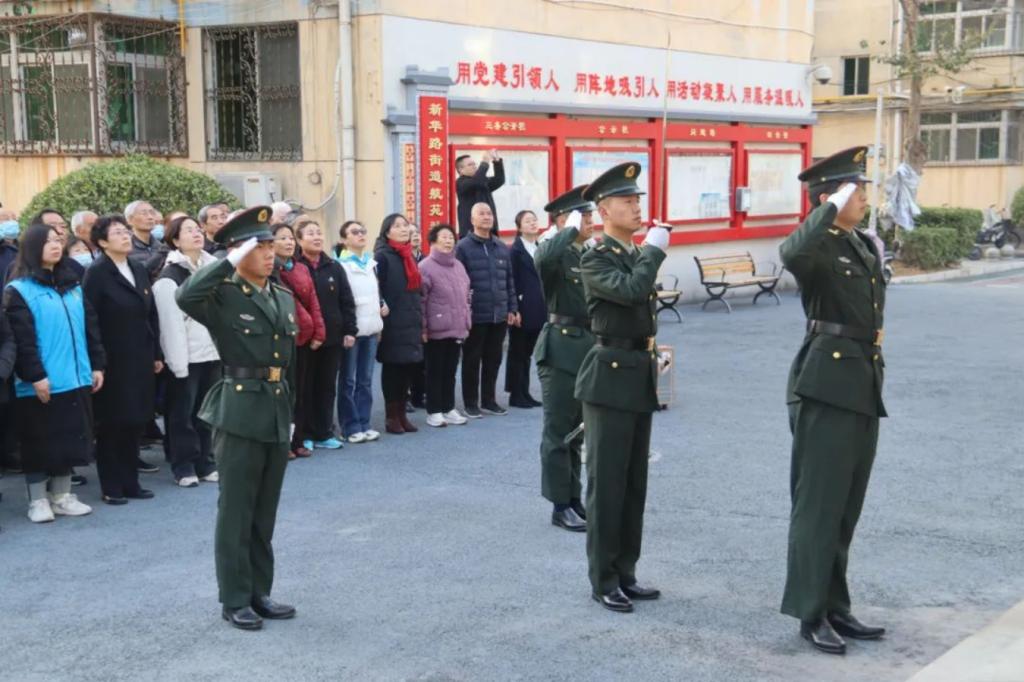 随着庄严的国歌响起,学员们迈着坚定的步伐走向国旗台,亲手将国旗冉冉升起。伴随着国歌的旋律,国旗在晨光中迎风飘扬,展示着国旗的无上威严与荣光。在场的社区居民们纷纷肃立,以注目礼向国旗致以最崇高的敬意和对国家的热爱。