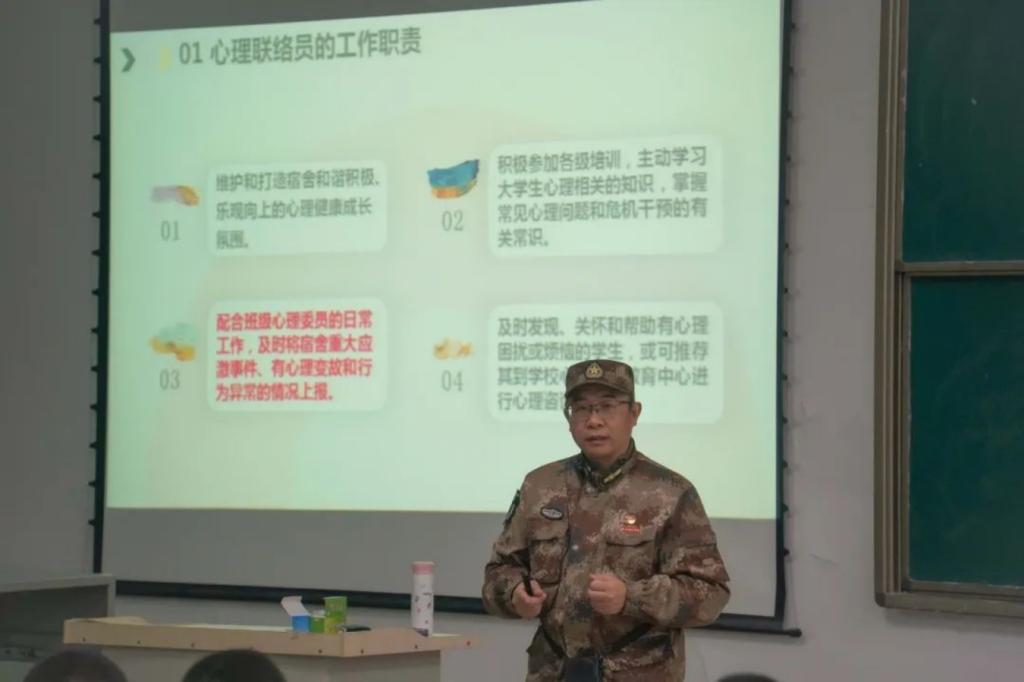为进一步加强学员心理健康教育工作,提升心理委员和宿舍舍长的心理疏导能力,3月10日,best365中国官方网站组织进行“做身边同学的守护天使”心理健康培训讲座,本次讲座由军士公司党总支书记李庆进行指导,全体心理委员和宿舍舍长积极参加。