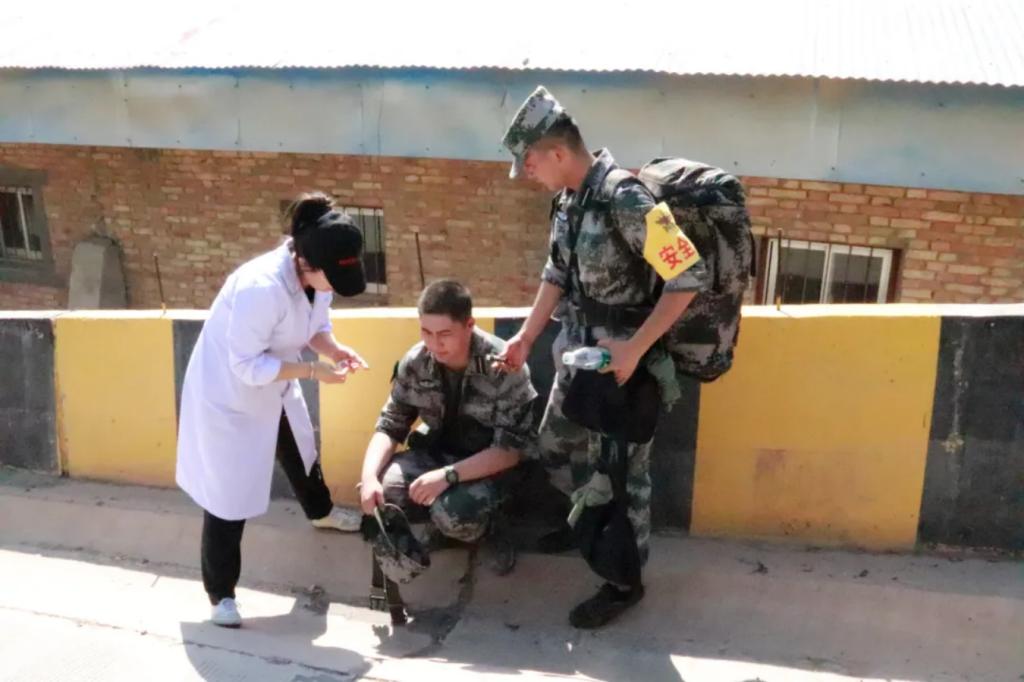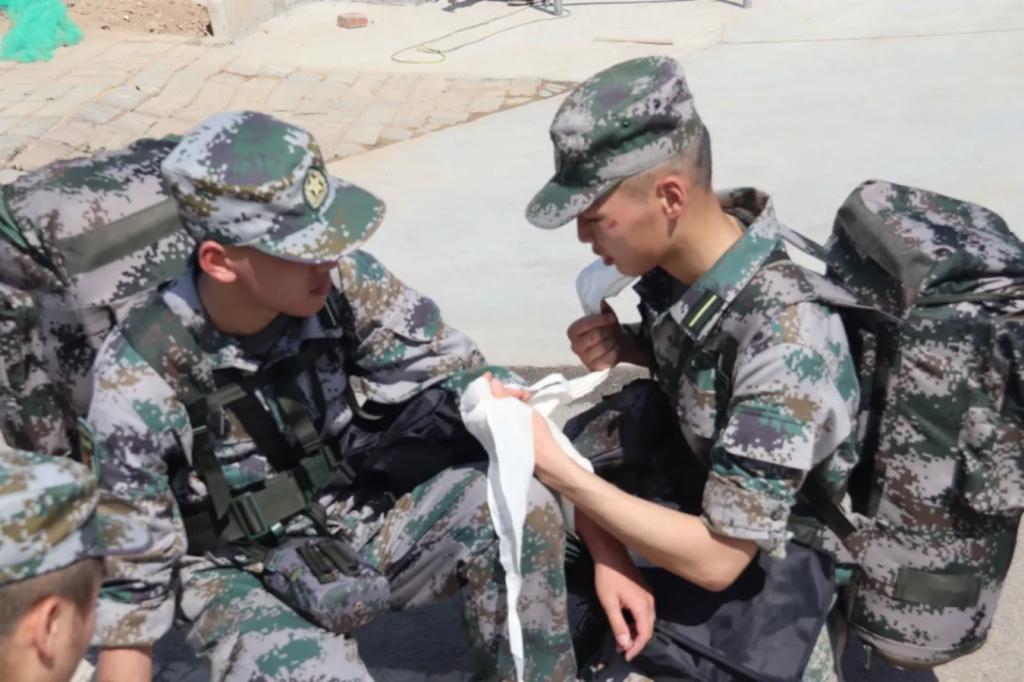 野外负重拉练不仅只有行进,同样充满了挑战。“前方为染毒地带,请捂住口鼻立即通过!”面对突如其来的毒气区,即使学员们背着沉重的背囊,也能迅速做出反应,有序穿过毒区;“发现敌机,全体警戒!”一声令下,各区队隐蔽伪装。警戒解除后,医疗队以最快的速度寻找“伤员”,进行战伤救护。学员们突破层层险阻,面对接踵而至的演练科目咬紧牙关,坚定斗志,向着目标地点进发。学员们不仅在实践科目中学会了如何应对各种突发情况,在提高了自身的军事素质的同时,也在艰难困苦中明白了坚持到底的重要性。