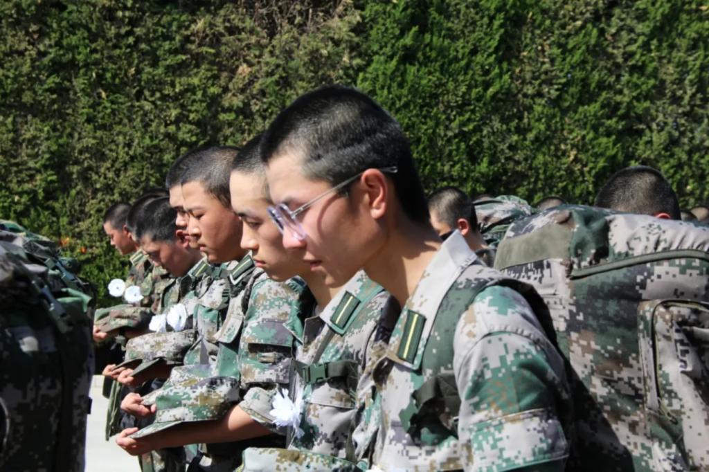 宣誓结束后,学员们围绕试飞院烈士公墓缓步行至一圈,献上胸前的白花来表达烈士们的缅怀。随后,在陵园负责人的带领下,观看了烈士陵园红色教育基地,对烈士们的英勇事迹有了更全面的了解。