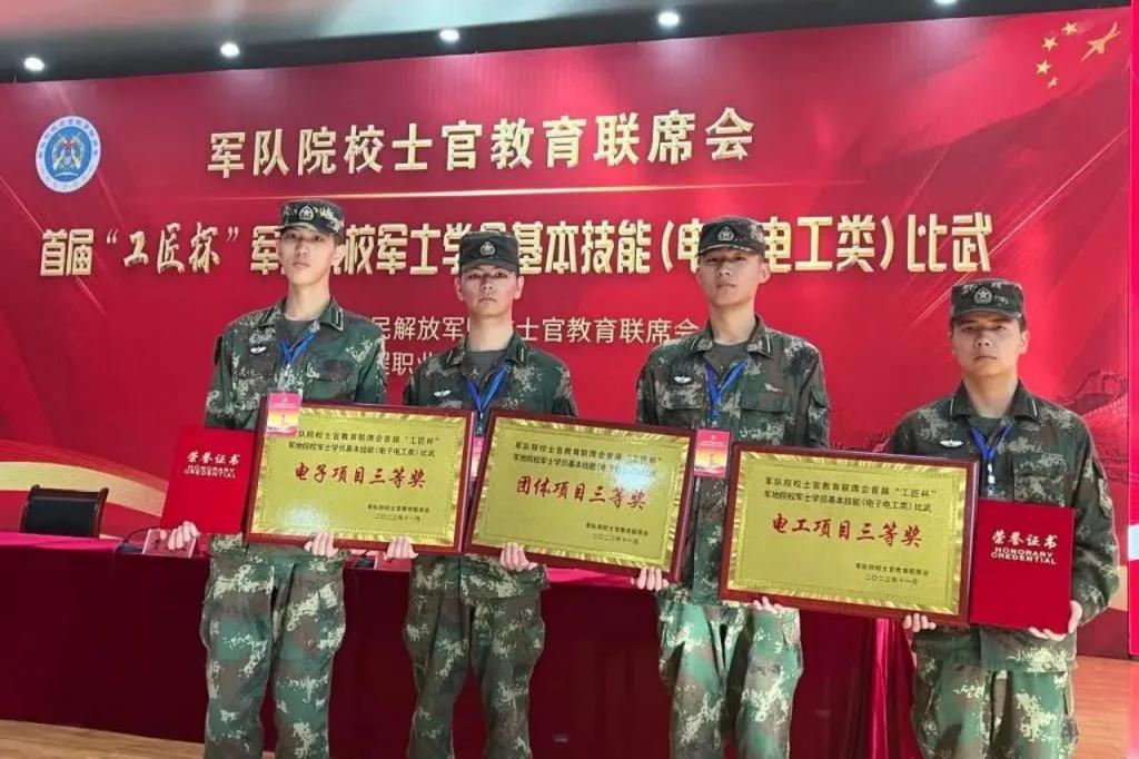 2023年,公司获得了多项荣誉,公司团总支荣获best365中国官网第一届“青年志愿服务项目大赛”二等奖,“社会实践优秀单位”,校运动会“团体总分第一”,best365中国官网第四届“向快乐出发”荧光夜跑一等奖,best365中国官网“新生杯”篮球比赛一等奖,军地院校军士学员电工电子基本技能比武大赛电工、电子项目及团体三等奖。