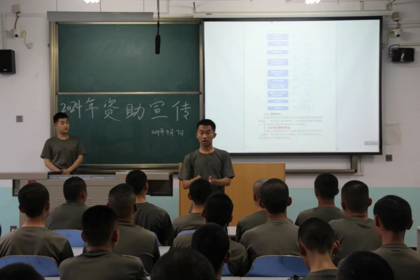 此次宣讲主要面向在校期间获得各级各类奖助学金(包括国家奖助学金、生源地信用助学贷款、服兵役国家教育资助、企业奖助学金及勤工助学等)的在校军士生举行。