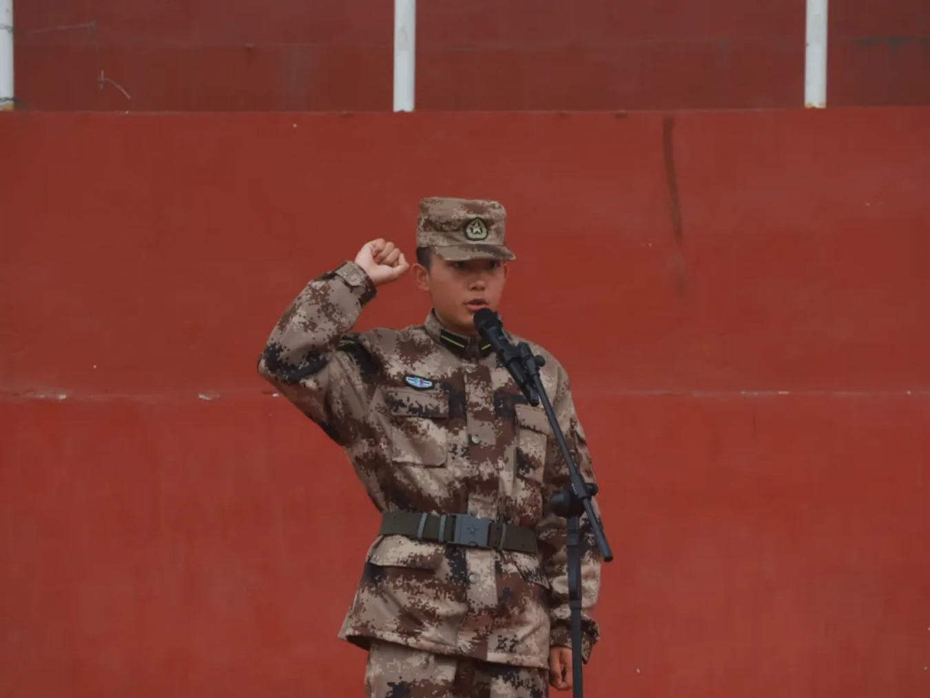 仪式第三项,由员工代表航信232D班赵豪杰带领全体新学员宣读军人誓词,学员们举初心之拳,宣铮铮誓言。那一刻,坚定的声音,每一个字都饱含着学员们内心的真诚与决心。
