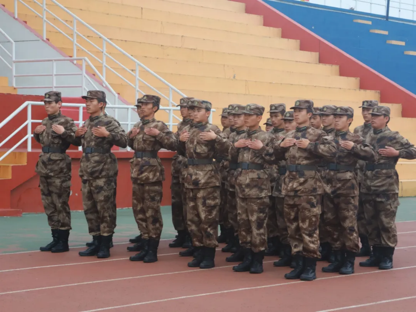 仪式第九项,全体成员奏唱军歌,随着声音的旋律,全体成员以饱满的热情齐声高唱,抒发了对祖国的热爱。