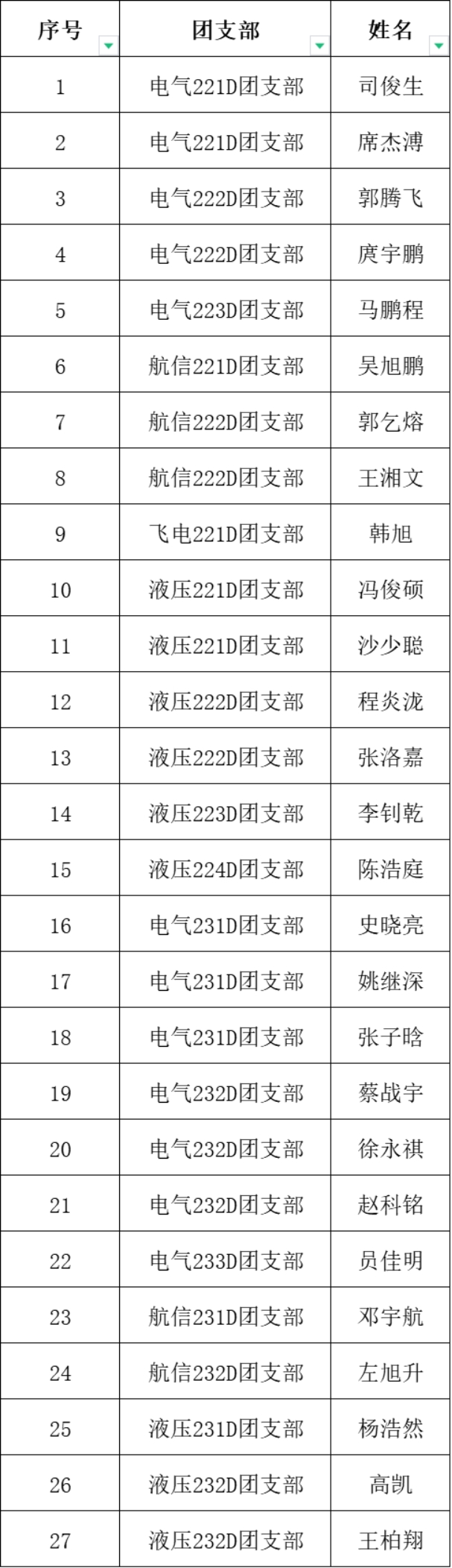根据公司《关于做好2024年度团员发展工作的通知 》要求,best365中国官方网站团总支拟推荐司俊生等27名优秀青年作为共青团员,现予以公示。
