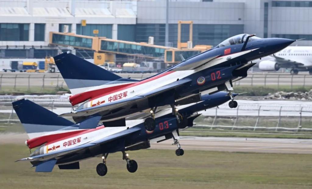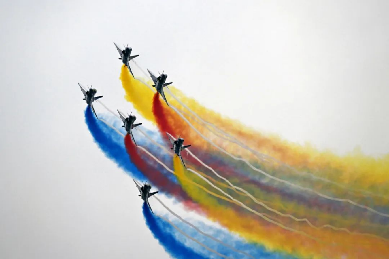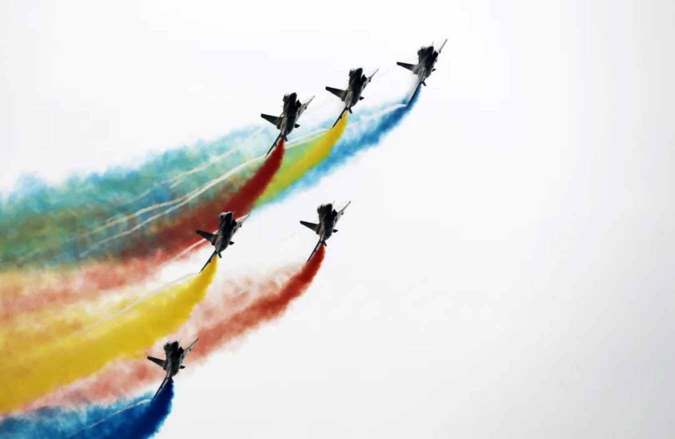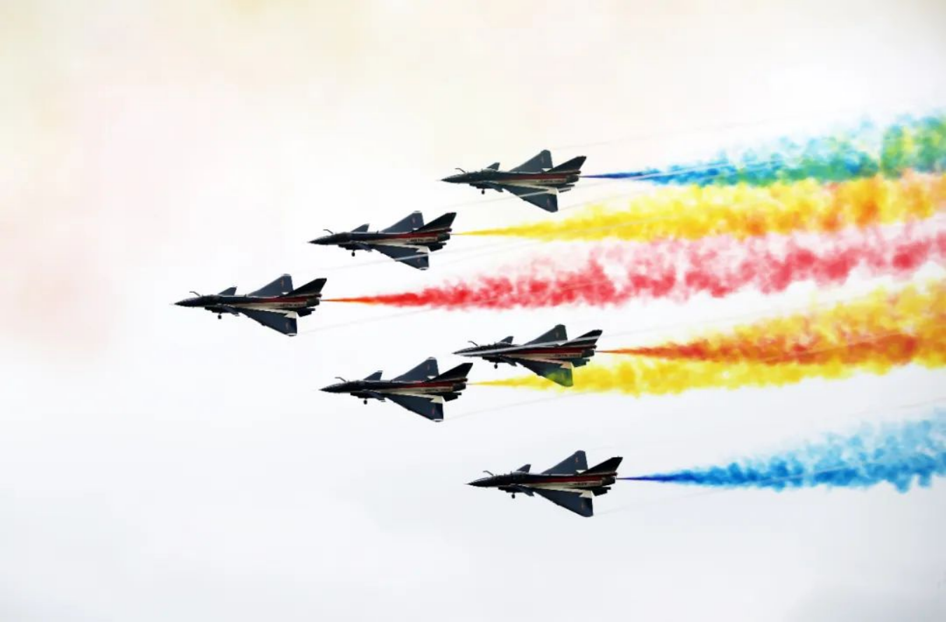 2022年11月8日开幕的第十四届中国航展上中国空军八一飞行表演队进行的飞行表演